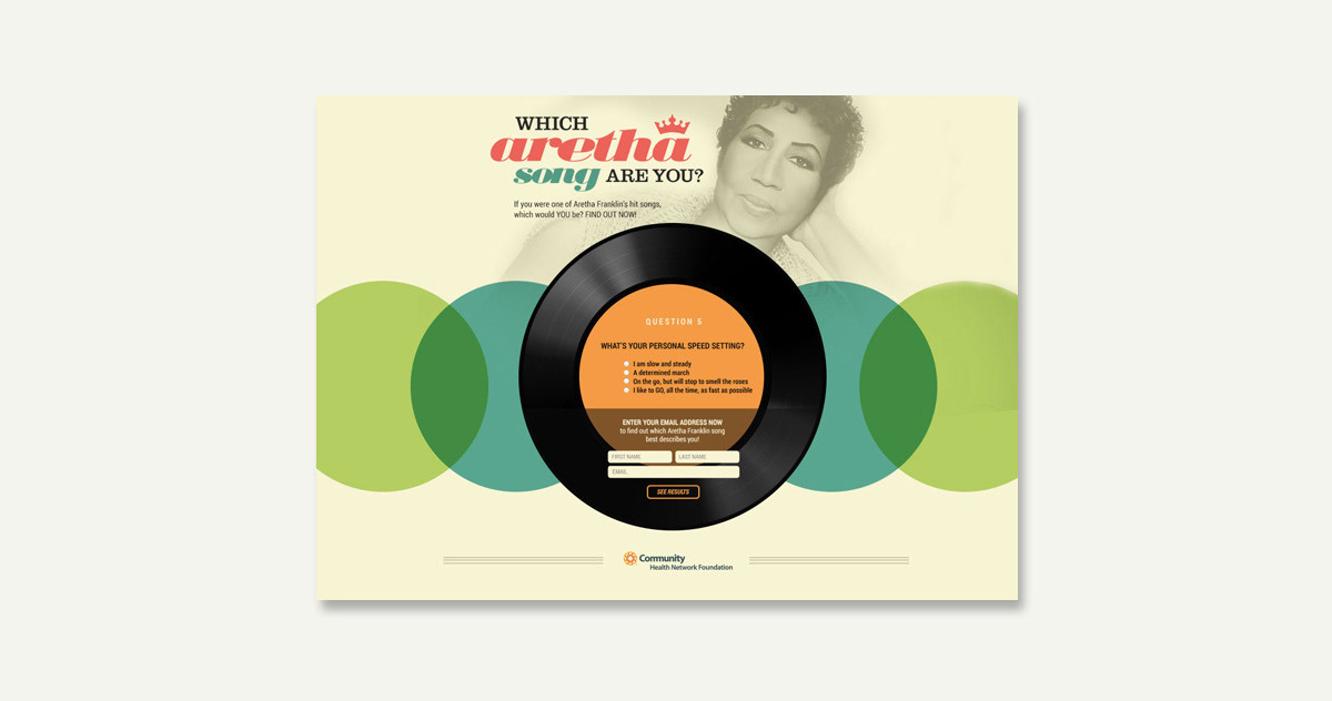 Digital quiz to promote Aretha Franklin as the featured performer at the 2017 Giving Gig