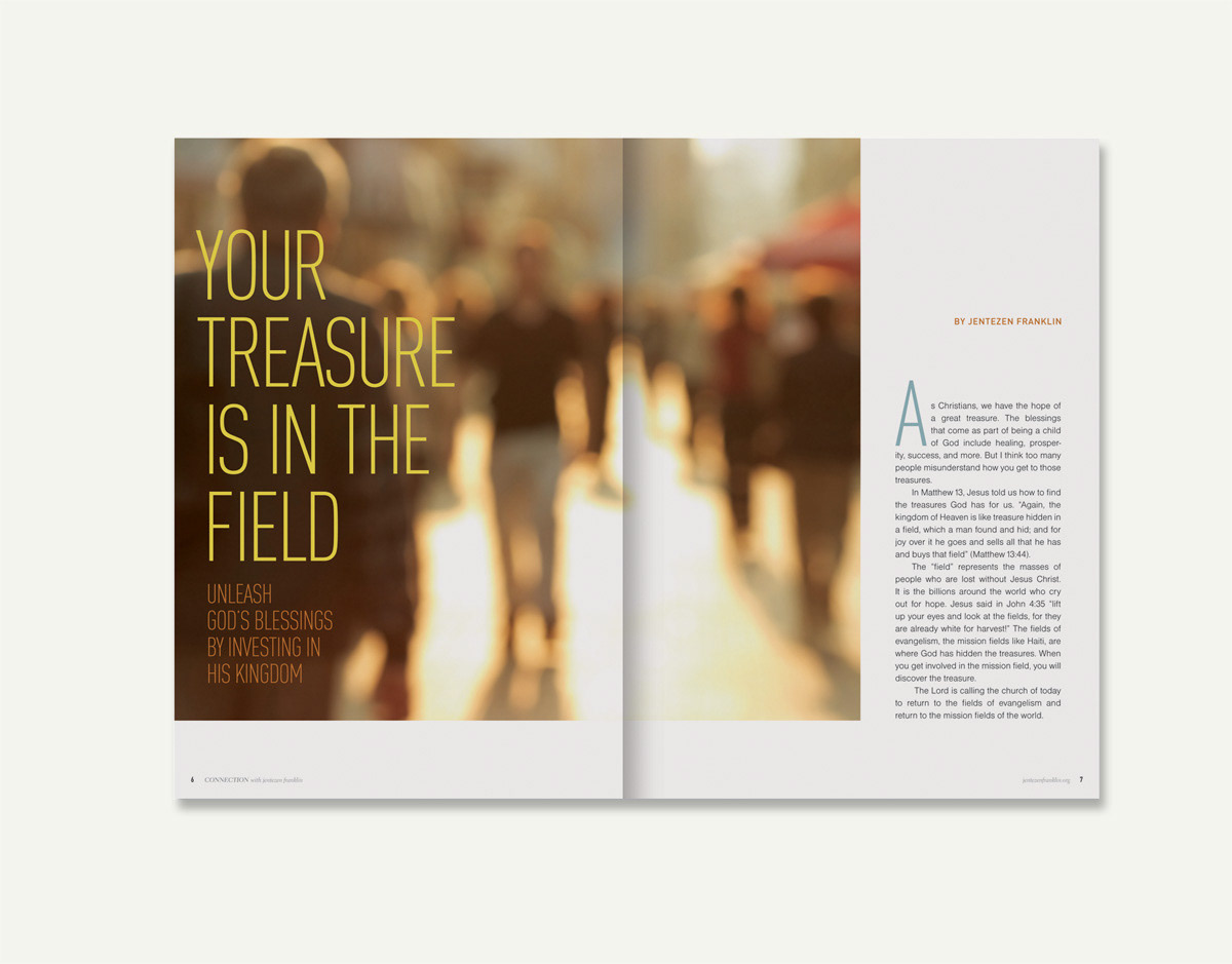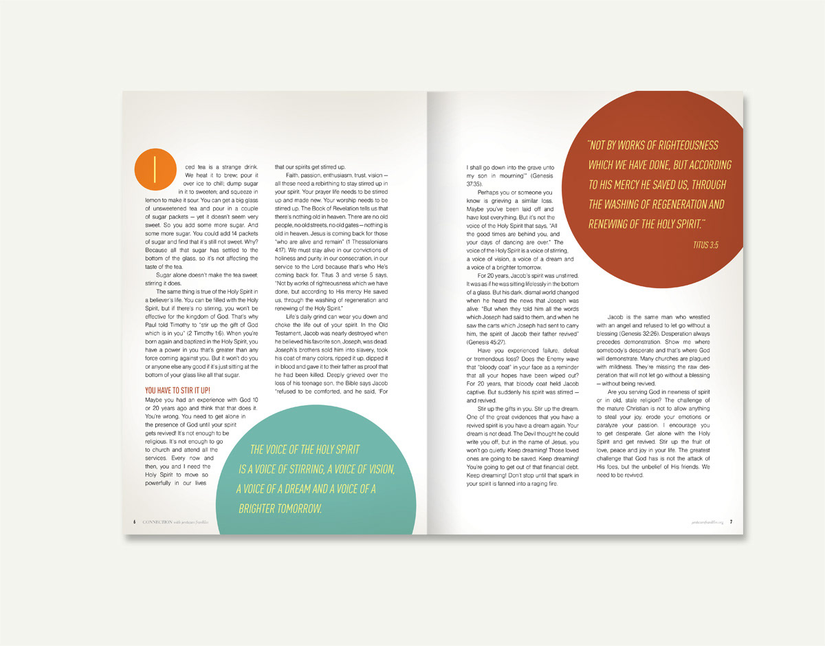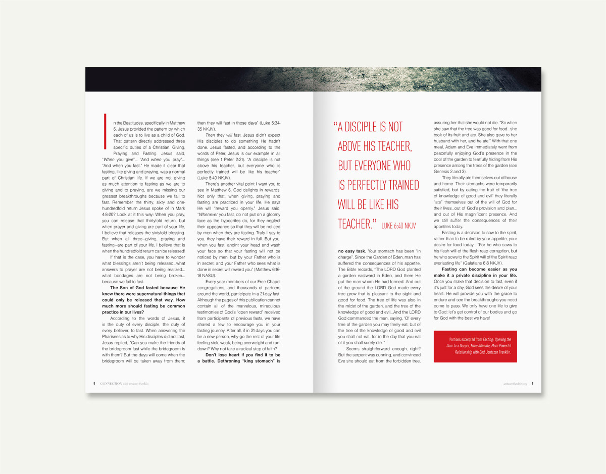 Design/Art Direction for bi-monthly magazine for JFM Ministries. Designed while employed at Roark Creative.